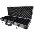 The interior is black velour with space for 500 chips, 2 decks of cards and 5 dice.