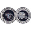 Officially licensed NFL Team Challenge Coin Card Guard. Two sided, team logo on one side and helmet design on other side. 2" across, pewter. Ships with Air Tite Holder.