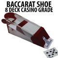 This is the shoe you want to buy for an authentic Baccarat or Blackjack experience, as it features a handle to accommodate unique rules and play style. Our shoes are modeled after the equipment professional casinos use, and are constructed with premium, quarter inch clear acrylic with stylish Red and white accents for maximum durability.