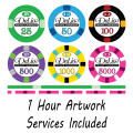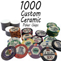 Custom ceramic poker chips are casino quality and fully customizable. Both faces and the edge can be completely customized. The image is part of the chip. It is not a sticker, label or any type of ink on top of the chip