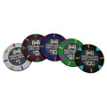 Finally the search is over for the perfect poker chip set. Introducing the Monaco Millions poker chip line. These fantastic chips are textured, stack great and are super heavy at 14 grams. The Monaco Millions clay composite poker chips will bring the look and feel of a casino grade chip to any home game. A unique and attractive edge design surrounds an inlay that displays the denomination of each chip and the words "Monaco Millions". These chips are eye catching as well as classy.