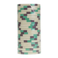 The Poker Knights poker chips are produced with real clay material. The poker chip mold has a sword striking through a spade. The edge spots boast a 2 tone matching color with the background. Each chip weighs around 13-14 grams.
