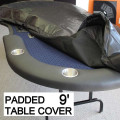 Our padded poker table cover was designed by Straight Poker Supplies. We designed these covers to fit poker tables which are 108 inches (9feet) by 48 inches (4 feet)