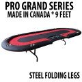 You asked for it....and we built it !! Introducing the SPS Pro Grande poker table. A Canadian built, 9' professional quality poker table with dye sublimated casino quality felt. This table is built in Canada by our team of woodworkers with the same quality and care as our high end custom built tables selling for thousands of dollars. Now everyone can own a professional quality, full size casino style poker table at an unbelievably low price.